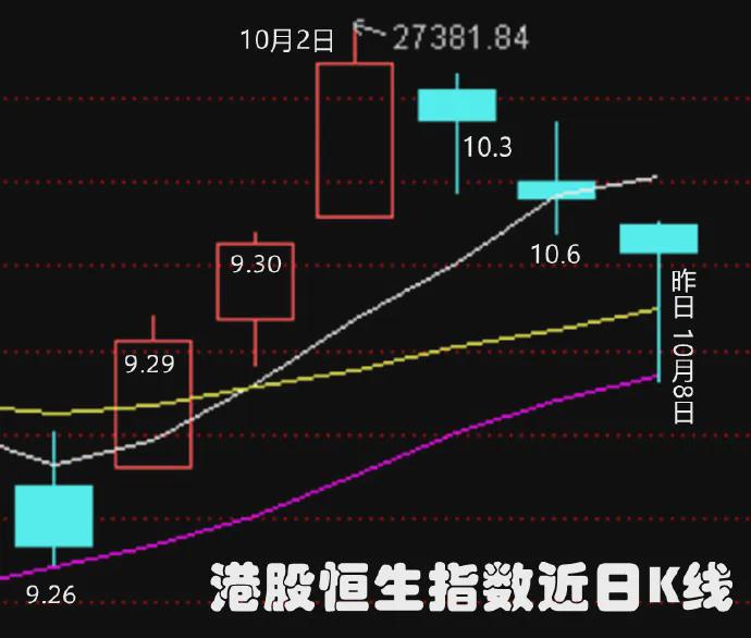 (沙:港股近来“断断续续”开市,10月2日大阳线,其它日子表现不佳。)
