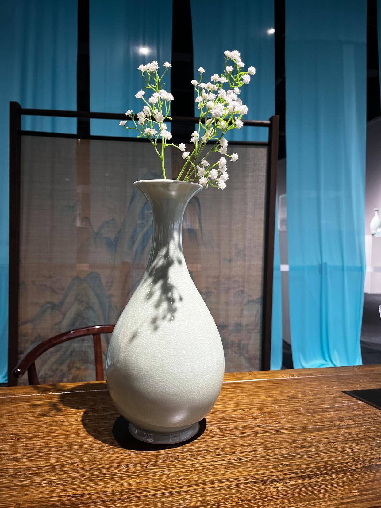 中国汝瓷博物馆外观。如果说天青釉色是汝瓷的生命旭阳配资,那么开片的声音便是汝瓷的灵魂。走进河南汝州宣和坊汝瓷生产车间旭阳配资,恰好赶上一窑汝瓷出窑旭阳配资,随着窑门缓缓拉开旭阳配资,带着窑火温度的汝瓷气息扑面而来,这场从 1300℃烈焰中淬炼而生的“仪式”,在快速冷却的过程里悄然酝酿着惊喜——仔细聆听,细微的“叮叮当当” 声萦绕耳畔!“耳朵贴上去仔细听,真的有‘风铃声’!”一位来自台湾的自媒体人惊喜地感叹,“好神奇!”大家纷纷拿出手机记录着这奇妙的声音。“这是汝瓷开片的声音,是素胎上釉烧制后在冷却过程中产生冰裂纹时发出的响声。”在汝州市宣和坊汝瓷有限公司的生产车间,负责日常烧窑的黄师傅介绍道。这微弱的细响在出窑后的数小时甚至数日内,由密到疏,宛如一曲渐行渐远的古典乐,记录着瓷器从烈焰到平静的蜕变。