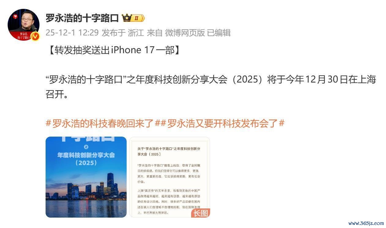 12月30日晚,罗永浩2025年度科技创新分享大会在上海举行。根据预告,大会将于19点进行,不过,罗永浩本人并未准时现身,而是迟到了50分钟后才出现在讲台。此前的发布会,罗永浩也曾多次迟到。有网友调侃道:“重新定义了19点。”